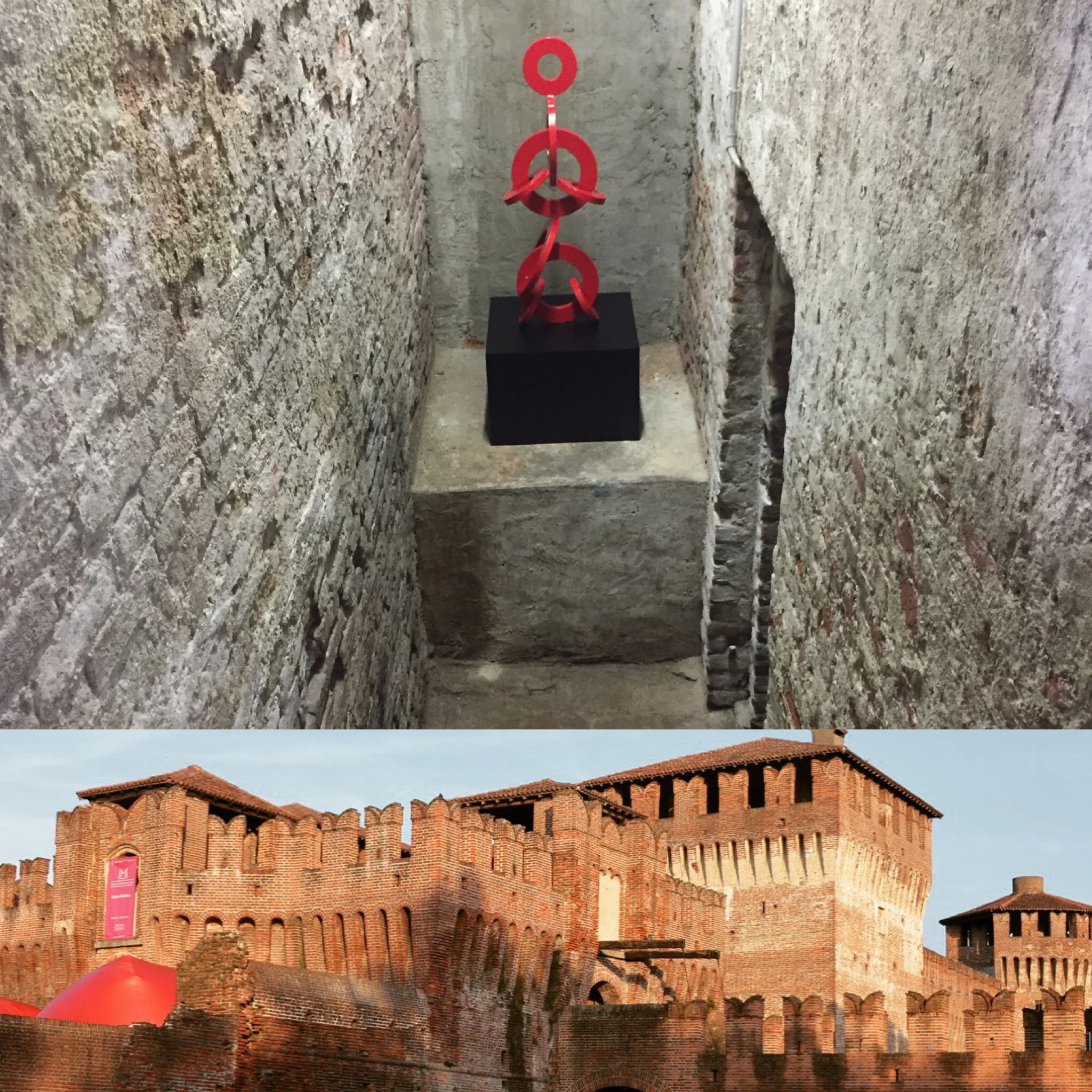 Desde que llegué a Soncino, pude observar construcciones maravillosas que hacen de este lugar un espacio ideal con una mezcla de estilos arquitectónicos. La Bienal se lleva a cabo en diferentes locaciones en toda la ciudad, sobresaliendo a lo lejos la maravillosa construcción Rocca Sforzesca. Mientras se recorre el Castillo, se puede apreciar el contraste de los pasillos, túneles, espacios y arquitectura medieval con las instalaciones y esculturas de arte contemporáneo, formando un espectáculo maravilloso de arte proveniente de todo el mundo que se une a la historia del lugar que ha visto pasar tanto a través del tiempo.