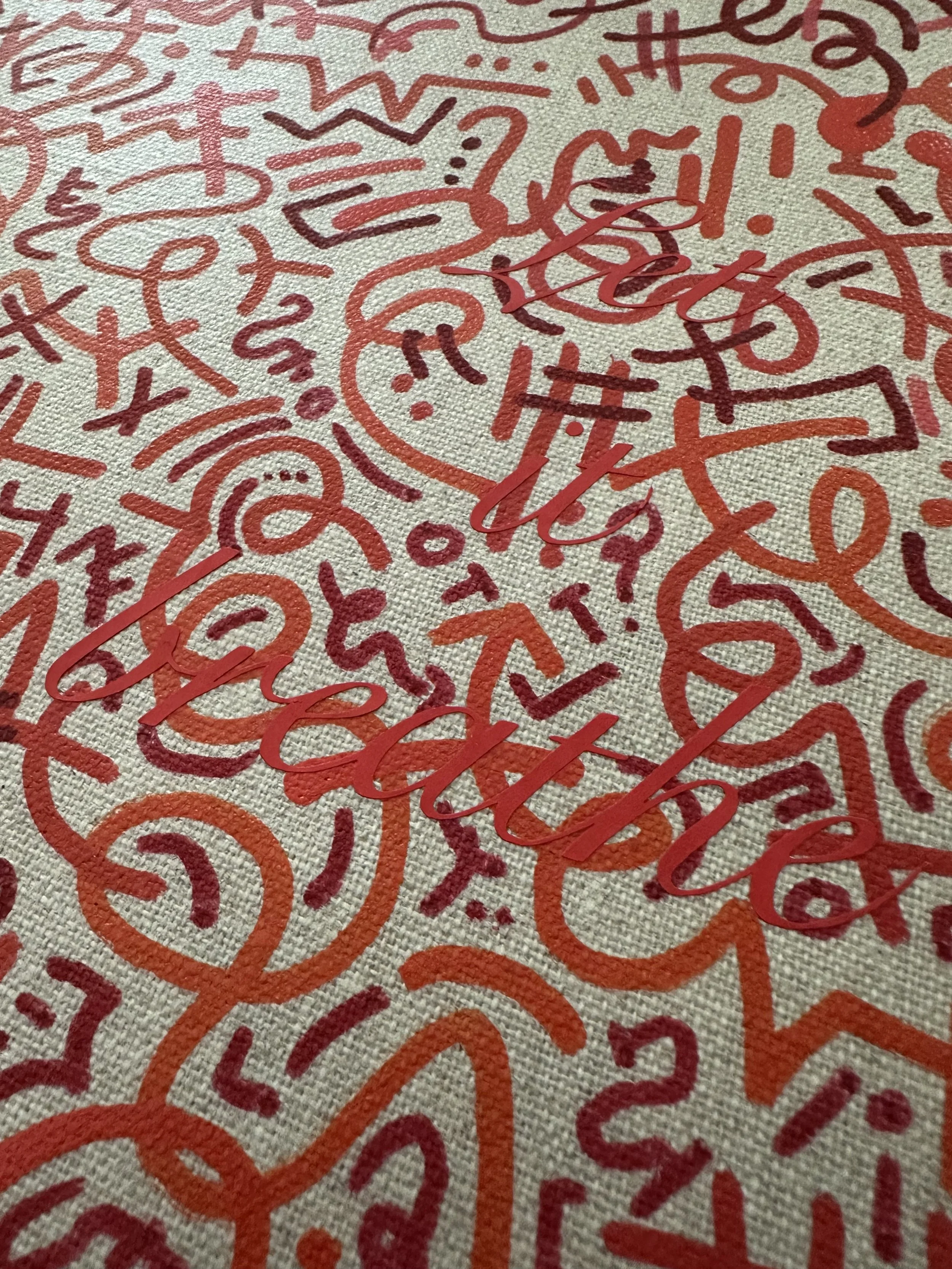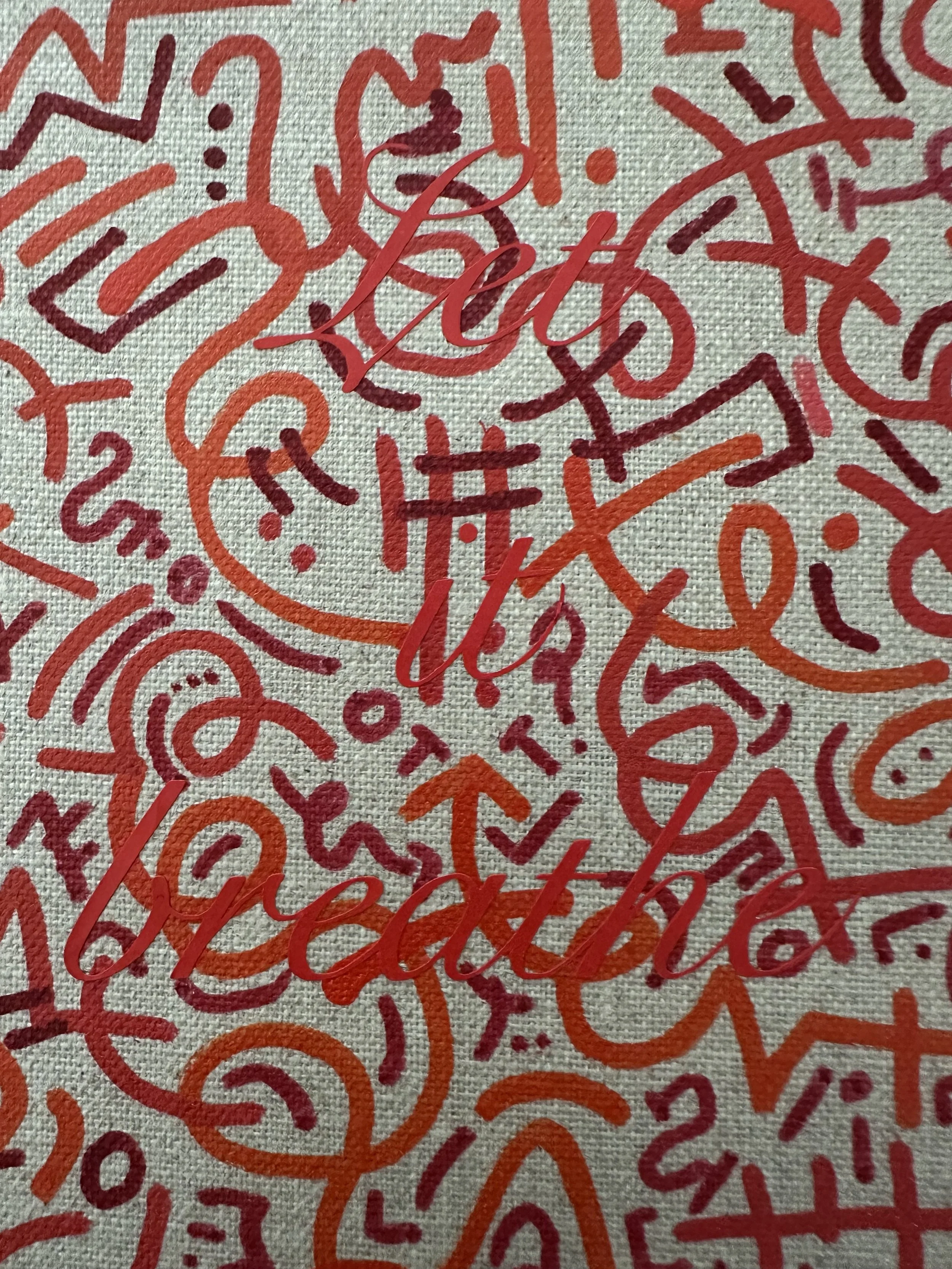 Digital CERTIFICATE OF AUTHENTICITY“ Let it Breathe “Collection: Signature Language Acrylic over linen canvasSize: 16 x 20 inches..Original one of a kind artwork mounted in acrylic and steel easel setting.