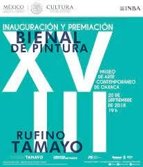 Poster for the XVI Rufino Tamayo Painting Biennial at the Museum of Contemporary Art in Oaxaca, held on September 20, 2016, at 7 PM.