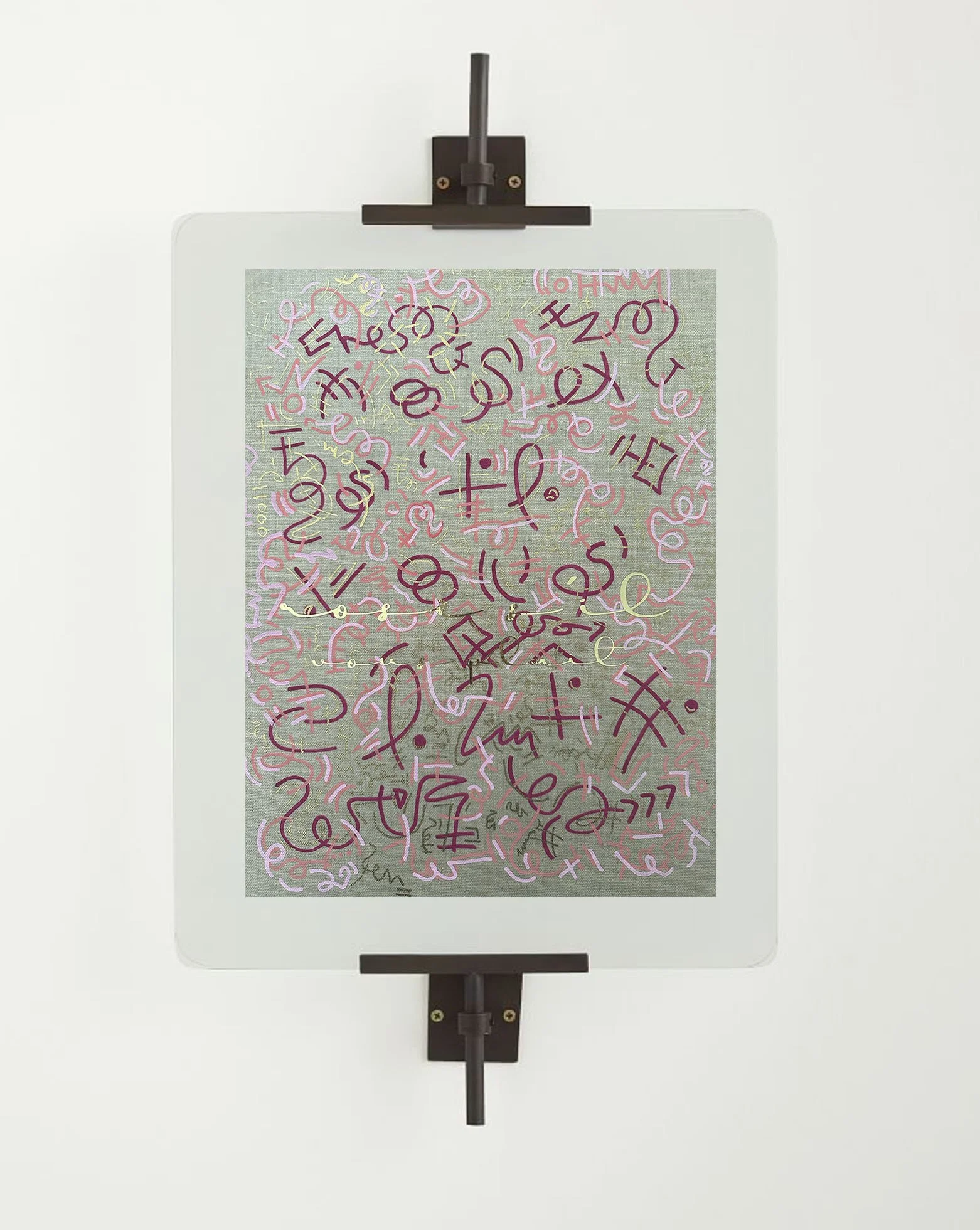 Digital CERTIFICATE OF AUTHENTICITY“ Rosè si vous plaît“Collection: Signature Language Acrylic over linen canvasSize: 16 x 20 inches..Original one of a kind artwork mounted in acrylic and steel easel setting.