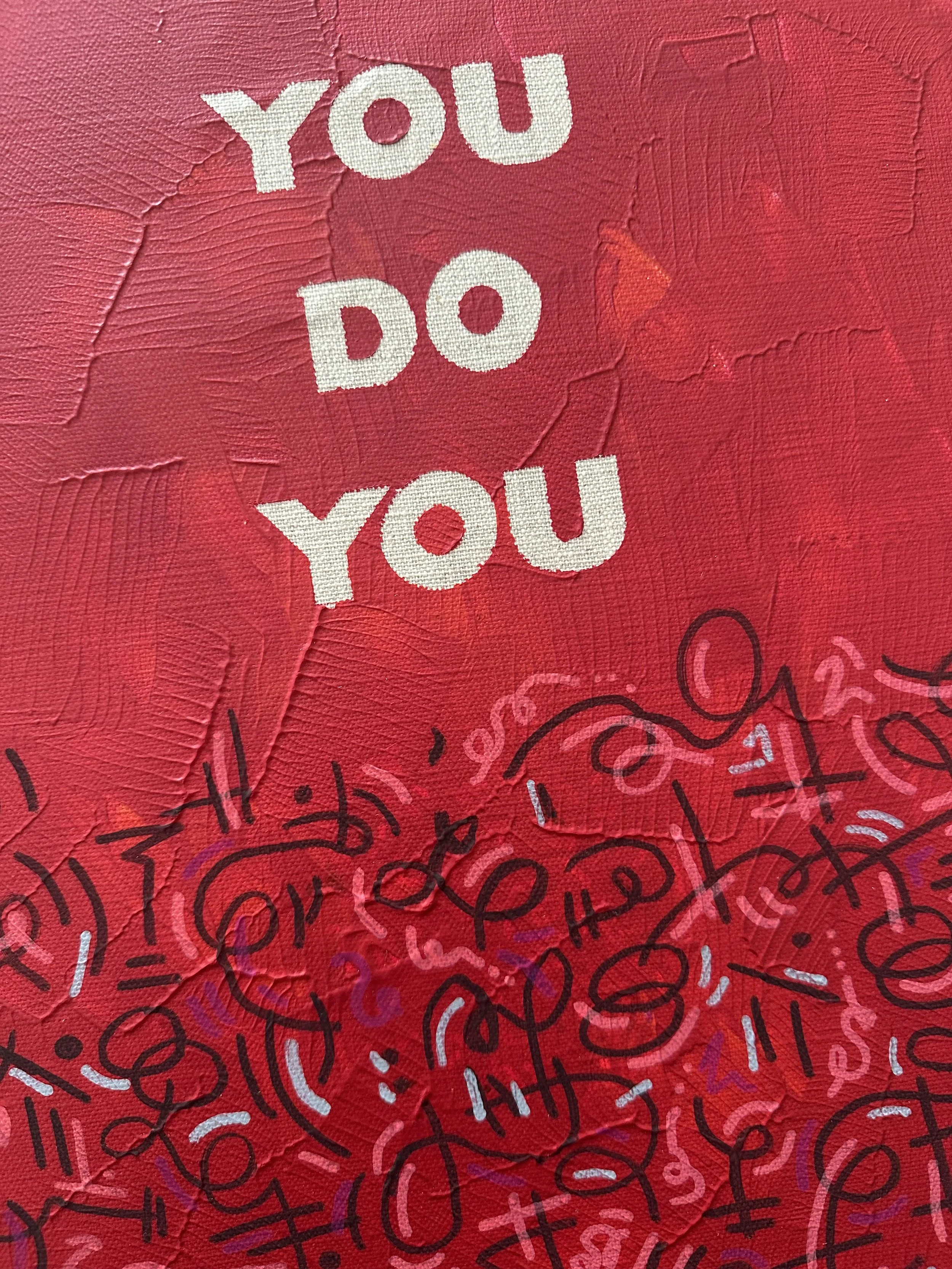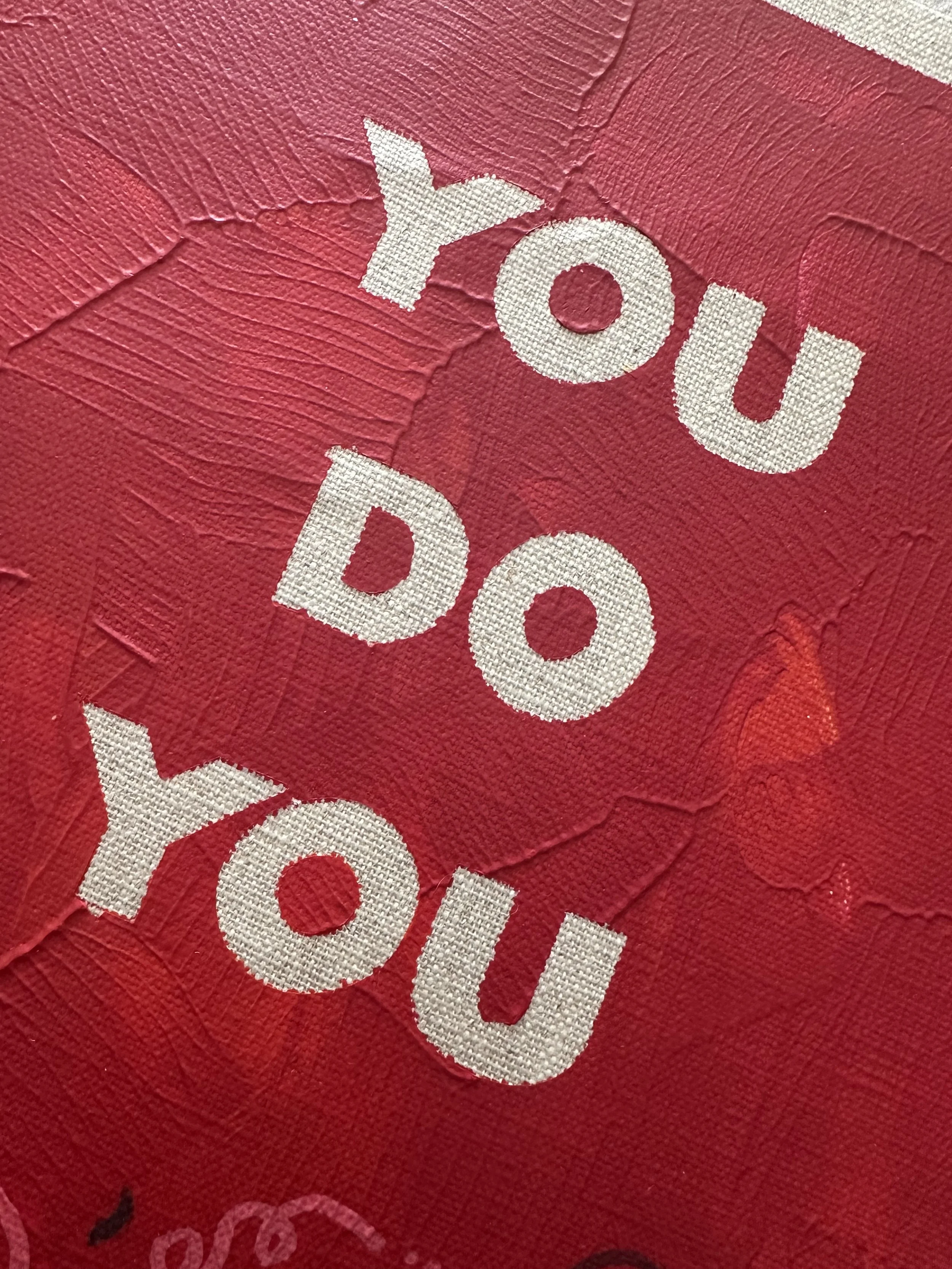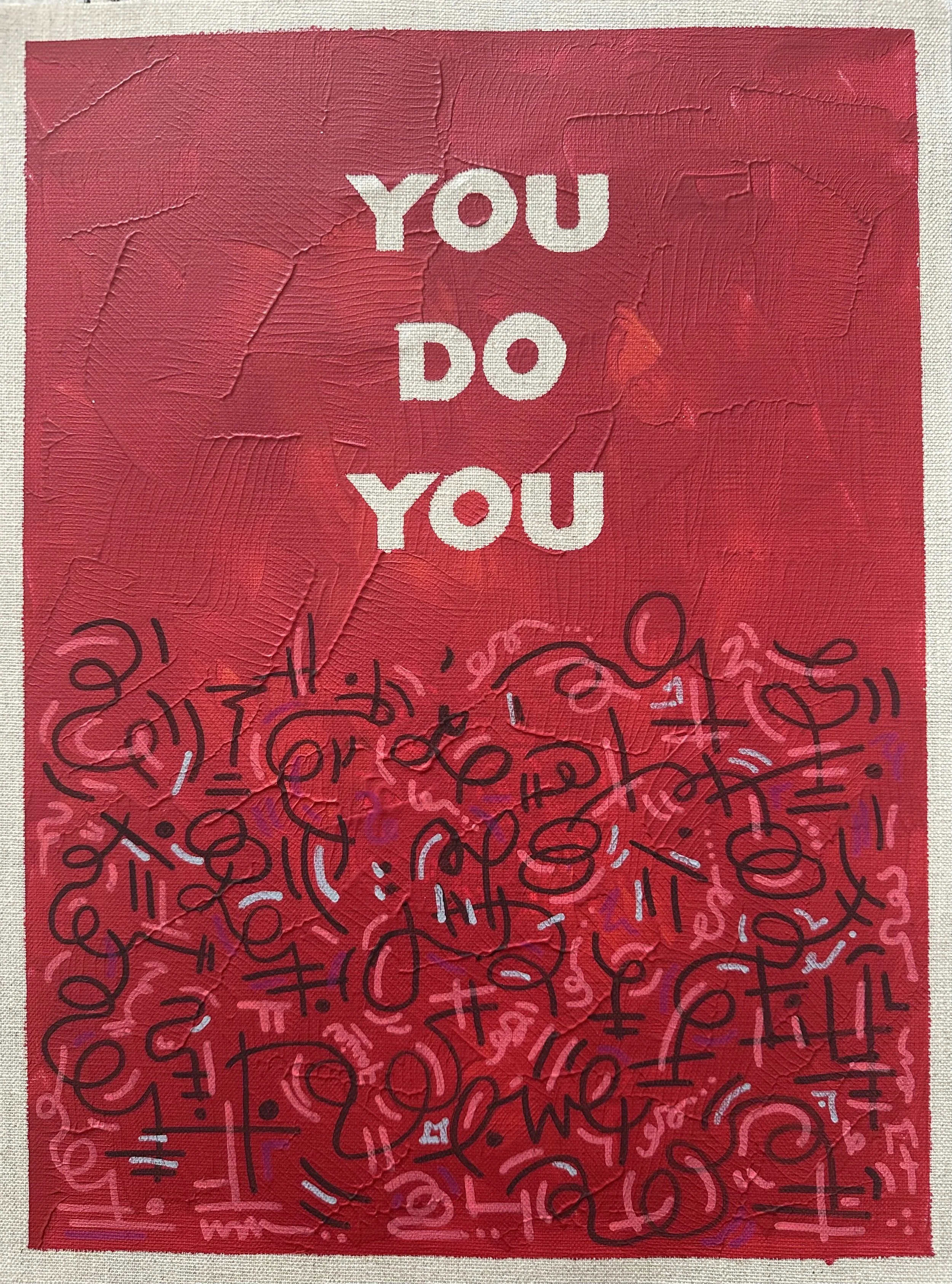 Digital CERTIFICATE OF AUTHENTICITY“ You do You”Collection: Signature Language Acrylic over linen canvasSize: 16 x 20 inches..Original one of a kind artwork mounted in acrylic and steel easel setting.